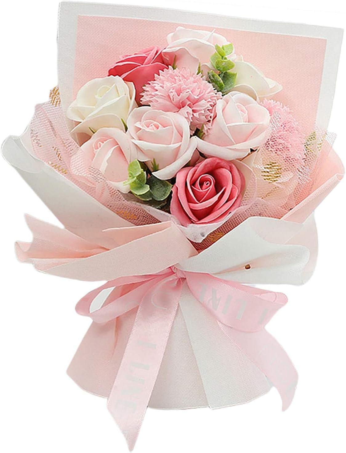 Soap flower bouquets offer a thoughtful alternative to traditional fresh flower gifts — particularly for those who want something that lasts beyond a week and looks beautiful displayed at home. This particular arrangement, with its warm pink and cream tones and neatly packaged gift box, is designed to arrive looking presentable without requiring any additional effort from the buyer.